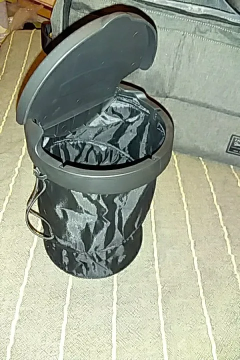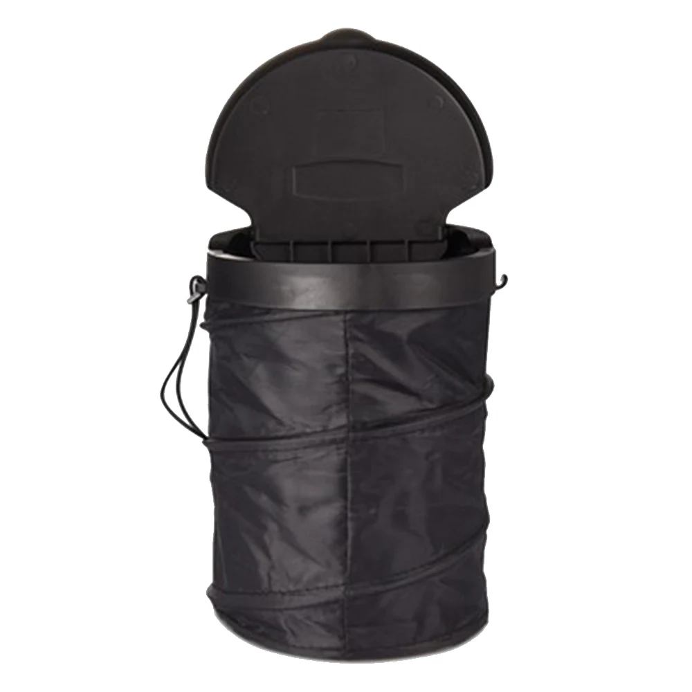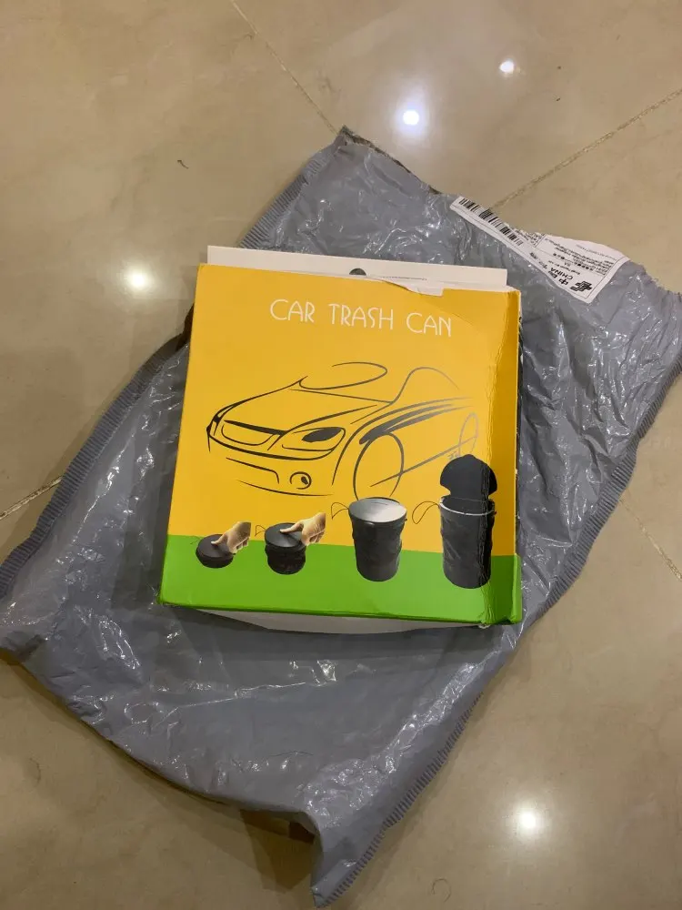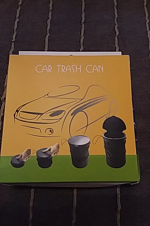 The car trash can is what I wanted. It is exactly like the photo and it works like it should. The package came with everything as the description had said. Flipping the lid is great and study. There's no holes. The bag doesn't move from the lid too. Thank you for this Car Trash Can! I'm sure this will be a great gift!