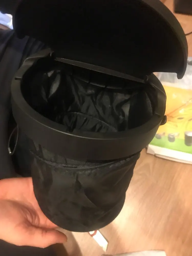 Мусорка прям как хотел: большая, куча разных возможностей для крепления на любую часть салона авто. Единственное не увидел возможности для крепления мусорного пакета внутри самой мусорки, в остальном доволен.