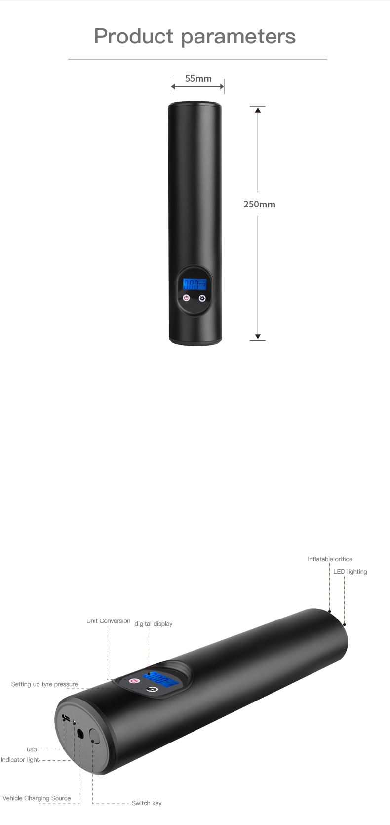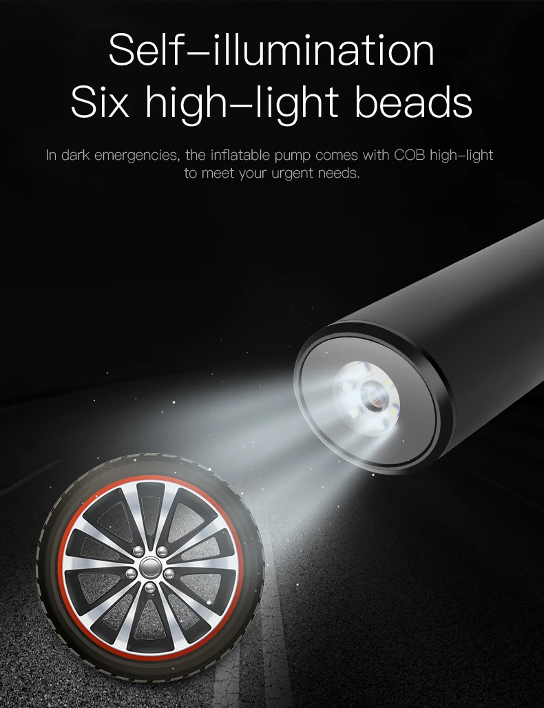 Night Use 6 LED Highlight COB lights automatically illuminate when inflating. With LED Lights in the bottom and LCD real-time pressure display on the side, you could conveniently use the digital inflator as a tyre pressure gauge and inflator in the dark.
