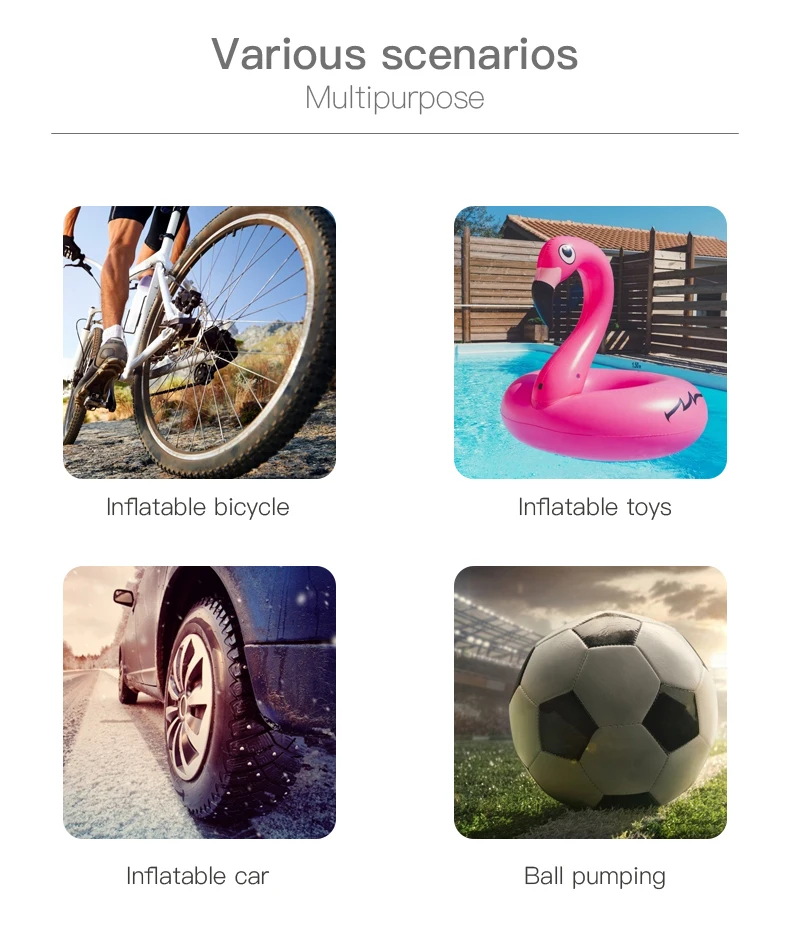 Multifunction With cordless portable design, AUDEW tyre pump allows to reach all tyres of your bicycles, motorcycles, cars (including SUVs). Also equipped with 3 nozzle adaptors for mattresses/airboat/toys/sports ball/ inflatables.
