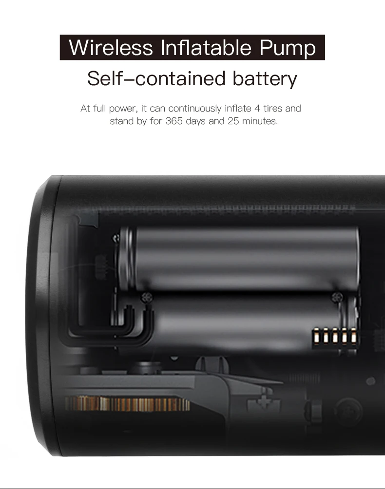 Fast Auto-Inflation The tyre inflator has 4 switchable pressure units (PSI, BAR, KPA, KG/CM) The tyre pump would automatically turn off when reaching the preset tire pressure. The inflator has a maximum inflatable pressure of 150PSI.